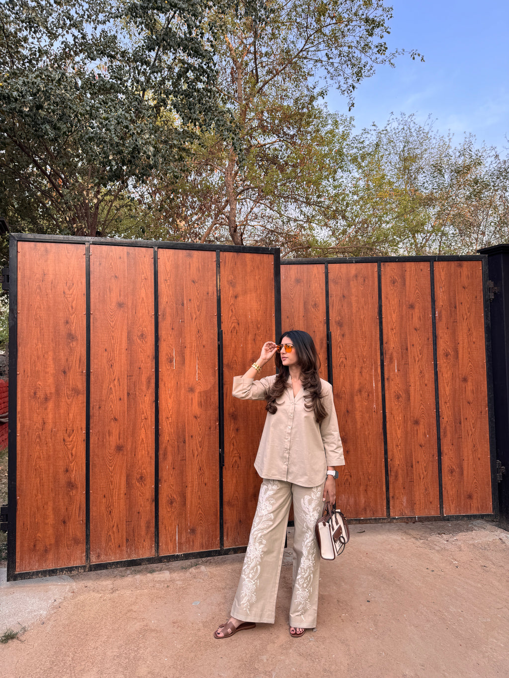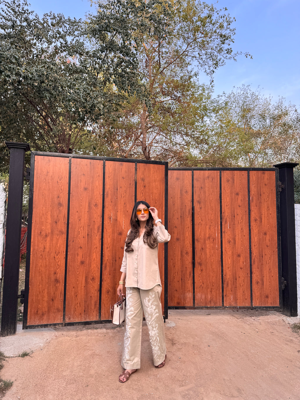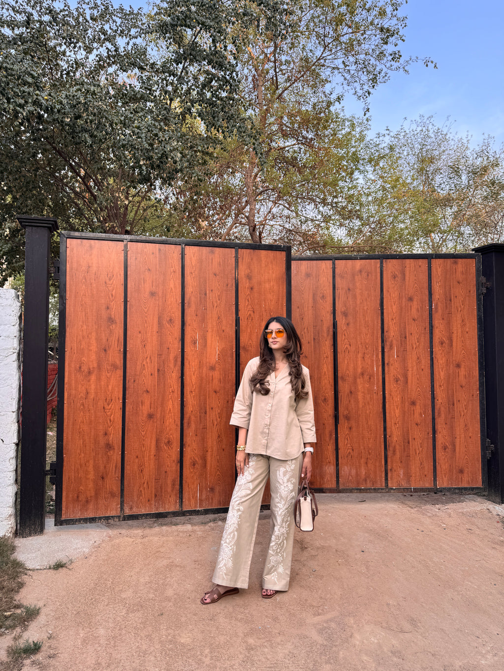 This Women’s Beige Linen Floral Embroidered Set combines comfort with timeless elegance. Crafted from breathable linen, the outfit features beautiful floral embroidery that adds charm and sophistication. Its soft beige shade makes it versatile for both festive and semi-formal occasions. Designed for comfort with a stylish silhouette, this set is perfect for women who prefer a subtle yet elegant ethnic look. Pair it with light jewelry and sandals to complete the ensemble.